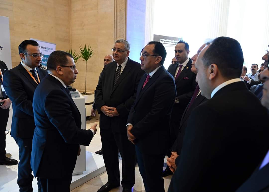 الدكتور أحمد عز الرئيس التنفيذي لمجموعة مستشفيات مجموعة كليوباترا يستقبل الدكتور مصطفى مدبولي معالي دولة رئيس مجلس الوزراء بجناح كليوباترا المشارك بالمعرض المصاحب للمؤتمر الدولي للسياحة الصحية