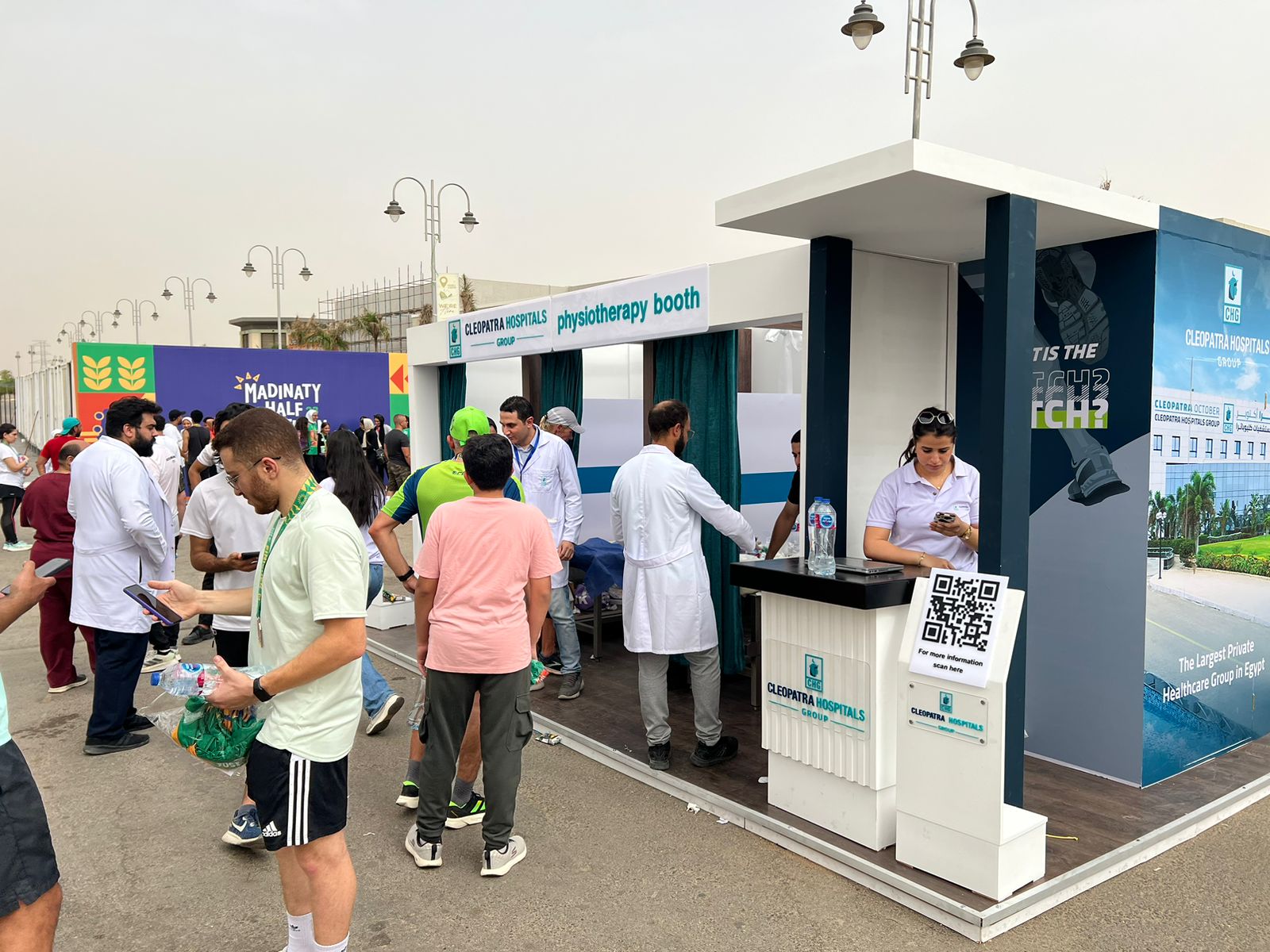 خلال السباق، سعدنا بمقابلة الكثير من المتسابقين وتم توفير لهم جلسات العلاج الطبيعي التي ساعدتهم علي التخلص من اي شد عضلي